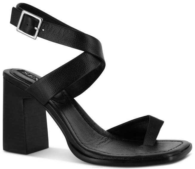 Zapatos de tacón de piel de becerro granulada color ébano con correa entrecruzada con detalle de hebilla plateada y tira en la puntera en una suela de punta cuadrada.