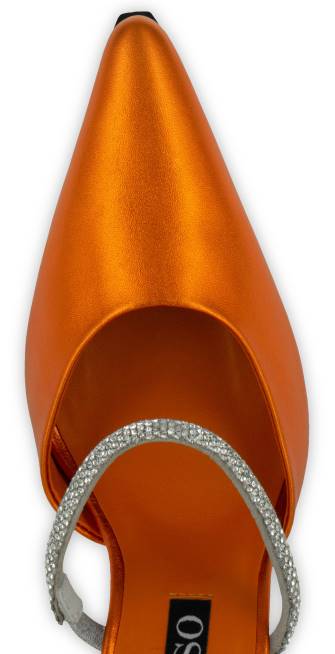 Zapatos de salón en piel de cabritilla metalizada puesta de sol con silueta de bailarina con puntera en punta y tira fina de cristal plateado.