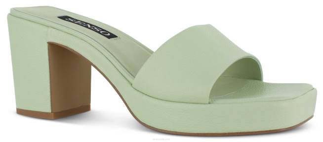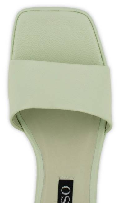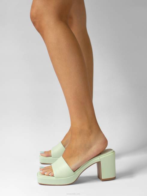 Zapatos mule con tacón en piel de becerro granulada color menta con tacón grueso y correa delantera gruesa.