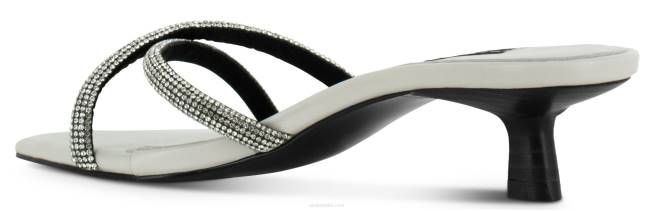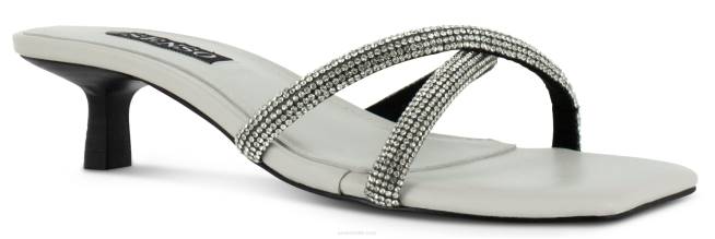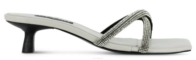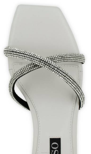Zapatos mule brillantes de mazapán mate para niños con un diseño cruzado de correa adornada con cristales, sutil tacón bajo y puntera cuadrada.