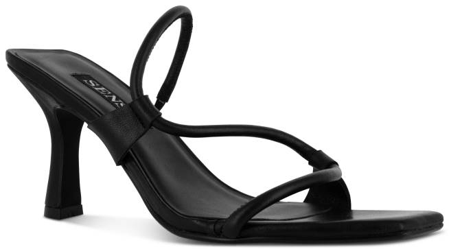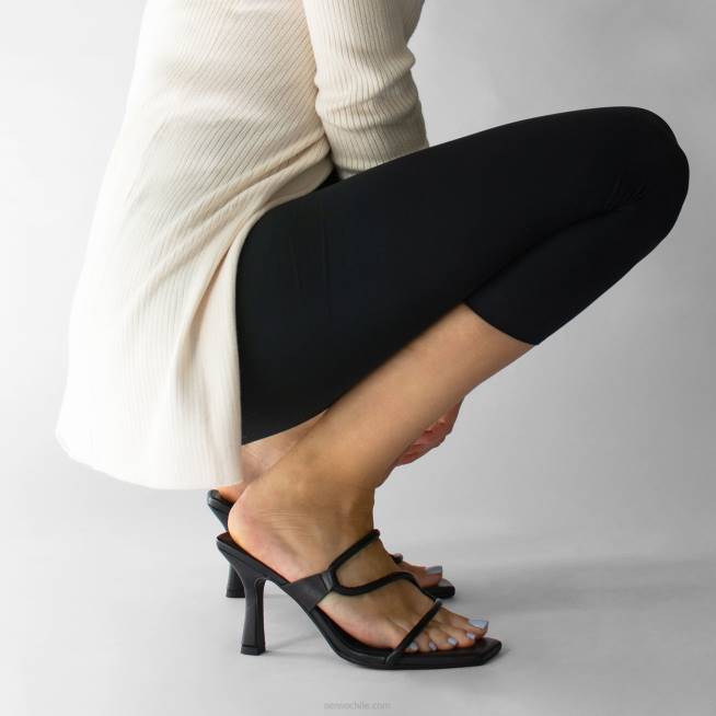 Tacón de niño mate de ébano, con un diseño de tiras, punta abierta y suela sintética.
