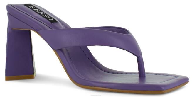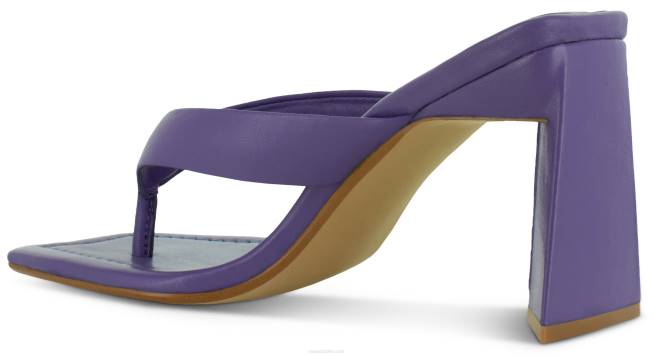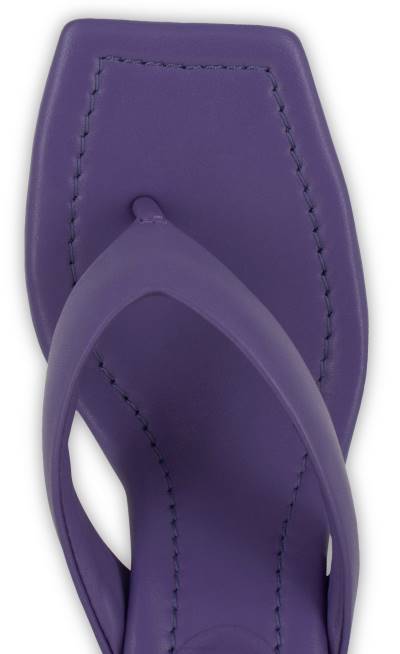 Zapatos de tacón en piel de cabrito mate amatista con un diseño sin cordones, detalle de correa de tira y tacón triangular en bloque.