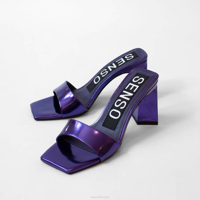 Tacón de cromo color uva, con tacón piramidal, punta abierta y suela sintética.