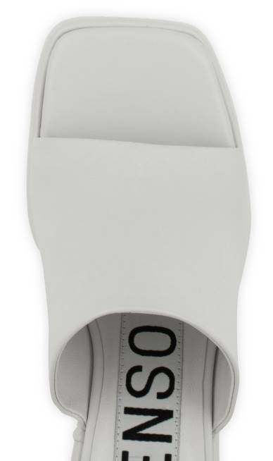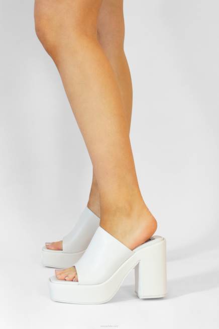 Zapatos mule de tacón de piel de cabrito mate de mazapán con tacón grueso, correa delantera gruesa y diseño sin cordones.