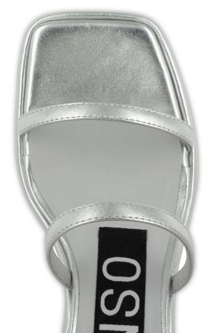 Sandalias de niño de acero metalizado, con tacón de bloque de plataforma, hebilla de metal y puntera cuadrada.