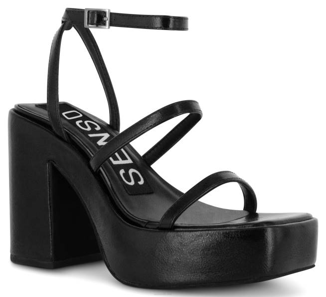 Sandalias de becerro metalizado envejecido de ébano, con tacón de bloque de plataforma, hebilla de metal y puntera cuadrada.