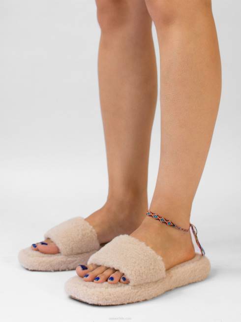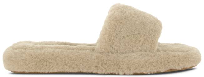 Sandalias de borrego sintético de trigo, con un diseño sin cierres esponjoso y suela de goma ligera.