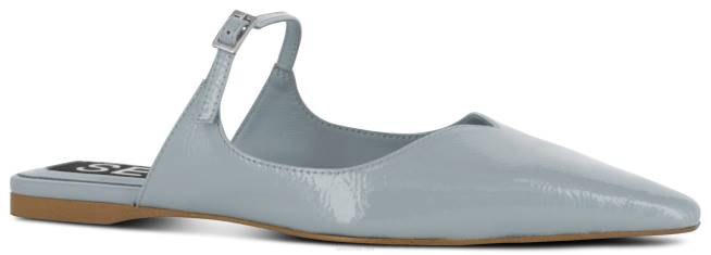 Bailarinas / mules Sky Kid de cuero naplak con estilo sin cordones, punta en punta, cierre de hebilla, detalles plateados, plantilla de cuero con la marca y suela plana de goma.