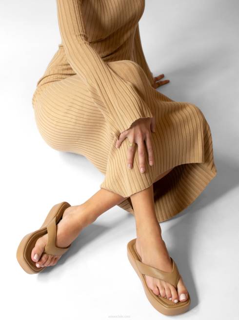 Sandalia de niño en color caramelo mate, con diseño de tiras y suela de goma con plataforma.